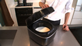 ④卵を熱したフライパンに流し入れ、
