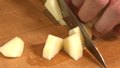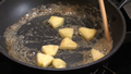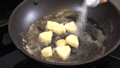 ④熱したフライパンにバターを入れ、リンゴを加えて炒める。