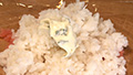 ⑤ご飯の上にクリームチーズを乗せ、さらに具の上にご飯を乗せる。