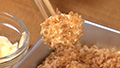 スパムをマヨネーズに絡めて炒めたパン粉をまぶす。
