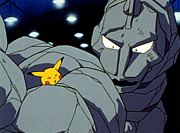 ピカチュウは、傷つき瀕死になる。そのピカチュウを必死に守るサトシ。サトシの気持ちにピカチュウは、最後の力を振り絞って応え、10万ボルトの電撃攻撃で、オニスズメの大群を駆逐する。