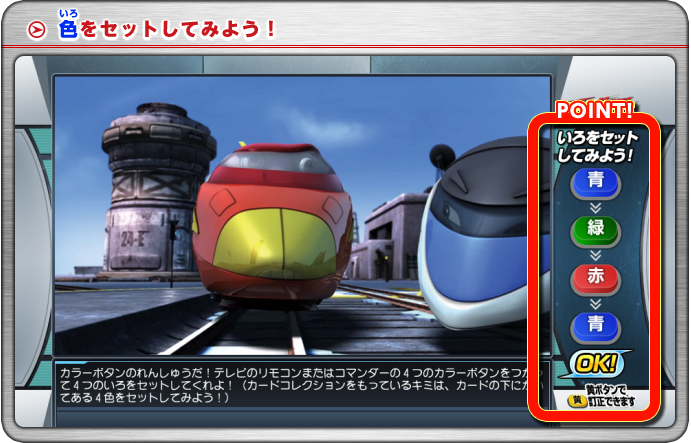 ニール教官からの司令があるのでカラーボタンを押してアールたちががんばっている救助活動を応援しよう!