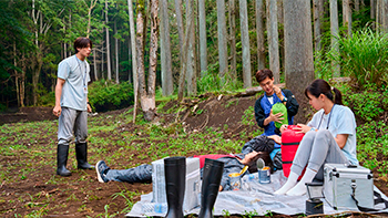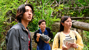 向かった先の森の中で生物学者のイチドウ アユムと出会う。男の名前をオオキダ ソラトとアユムに紹介するコウセイ。3人は力を合わせ、怪獣の捜索を開始する。