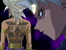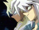 | 邪悪な意思に支配され、もう一つの人格に代わった「闇のマリク」対「闇の獏良」の「闇のデュエル」が始まろうとしていた。それは失われたライフポイントの分だけ、闇が体の一部を消していくゲームだった。獏良の中には、洗脳によってマリクの表の人格が植えつけられており、その「表のマリク」は闇のマリクに対して「お前を葬ることが亡き父へのつぐないだ」と復讐を宣言し、獏良に協力を申し出る。そして表のマリクは獏良に「闇のマリクを倒せば、千年ロッドを渡す」と約束するが、闇の獏良はそれだけでは満足せず、闇の力を手にするための暗号が書かれた、マリクの背中に彫られた碑文の意味も教えることを約束させるのだった。 |