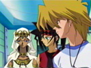 | バトルシティ決勝トーナメント第4回戦がいよいよ始まろうとしていた。4回戦は海馬瀬人と、これまで姿を現さなかった8人目のデュエリストの対戦。相手を待ち受ける海馬の前に現れたのは、マリクの姉・イシズだった。イシズはかつてレアカードハンターの集団・グールズの壊滅のため、自らの持つ幻のレアカード「オベリスクの巨兵神」を海馬にあずけていた。そしてこの大会は、グールズをおびきよせるために2人が共謀して開催したものだったのだ。そのイシズが対戦相手と知り、おどろく海馬だったが…。 |