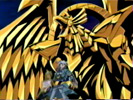 一方余裕のマリクは、「闇へのいけにえの儀式を始める」と宣言し、舞の解読できなかった呪文を唱えて「ラーの翼神竜」を起動。そして、その攻撃によって舞を焼き殺そうとする。 |