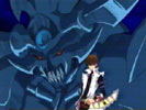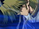そして遊戯のターン。海馬のフィールドには攻撃表示のブレイドナイト・リバースカード2枚。マリクのフィールドには攻撃表示のダークジェロイド。城之内のフィールドにはリバースカード1枚。城之内と準決勝を戦おうと思っている遊戯は、圧倒的に不利な城之内をねらわず、今回のキーポイント「暗黒魔族ギルファー・デーモン」で海馬かマリクを先にたおすことを考えていた。マリクに攻撃を宣言しようとしたその瞬間、城之内が遊戯に声をかけた!! |