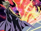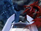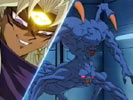| 城之内とマリクのデュエルも大づめをむかえていた。マリクは神のカード「ラーの翼神竜」の第三の能力を使い、城之内と彼のモンスター「ギルフォード・ザ・ライトニング」を炎で攻撃する。炎に焼かれた城之内は、意識を失いかけながらも強い精神力でデュエルを続けようとするが、神の攻撃を受けた城之内だったが、ギアフリードを召喚。死者蘇生の効力の消えたラーがマリクのフィールドからいなくなっている状態なので、このギアフリード攻撃でマリクを倒すことができるが・・・。 |