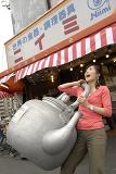 合羽橋といえば、食品サンプルのお店が多くて楽しいですね。実物なみに仕上がった作品に職人芸の随意を垣間見ました。しかし、すごく大きなヤカンですね。アド街本の発売を楽しみに待っております。