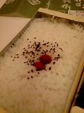 なんと梅干が2つ入って、双子日の丸弁当でした~。