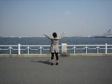 春の横浜、山下公園での女二人。