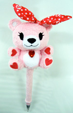 深めようと一生懸命作ったモテグマ。 そんなまりっぺさんの思いがつまったモテグマを 全国のモテ子に広めようと、学校でも毎日 使えていつでも持ち歩けるように 未海ちゃんが開発したモテグマペンだよ! 本体は、肌ざわりのいいファー素材。 胸にはハートのチャームがついているよ。 頭のうさ耳リボンもとってもラブリー♪ 「ぬいぐるみペン」 10月上旬発売 価格:980円 お問い合わせ先:ショウワノート |