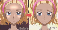 | 鼻やほほなどでっぱったところは二度ぬりしよう。 |