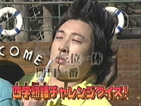 ▽「四字熟語クイズ!」 まずロバートの三人が体験するのは・・・一触即発!パンパンにふくらんで、今にも破裂しそうな風船をお腹にかかえながら、ハラハラドキドキのチャンバラ対決!無事に一触即発状態を切り抜けられるのは誰?さらに!ドッキリをしかけられた山本隊員は開口一番に何を言う!?など、今週も体をはったクイズが盛りだくさん!