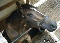 ターフでの圧倒的な強さから想像も出来ない、馬房でのんびりしているウオッカ。