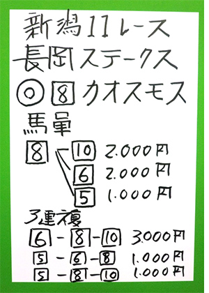そして、同日新潟で行われたGⅢ「新潟記念」。