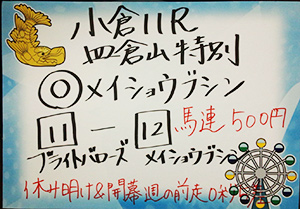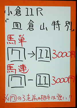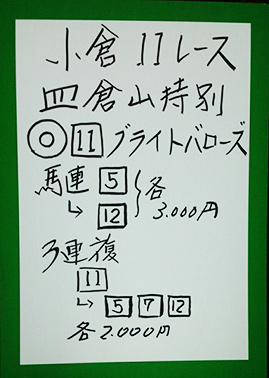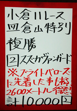 続いては小倉メインレースで馬券対決です。結果はこちら。
