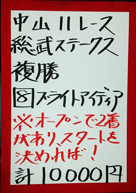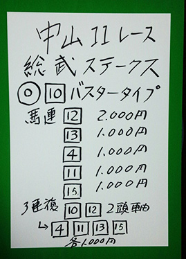 続いては、「総武ステークス」で馬券対決です。結果はこちら。