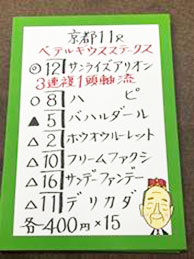 まずは、京都メイン「ベテルギウスステークス」の結果になります。