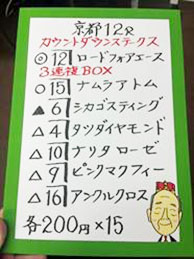 最後に、京都12R「カウントダウンステークス」の結果になります。