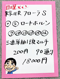 最後に、日曜【GⅡ】「フローラステークス」の結果になります。