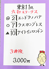 | 東京11R 六社ステークス | |