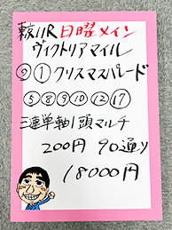 なんと、4レース中3レース的中の猛打賞で払い戻しは15万円以上!