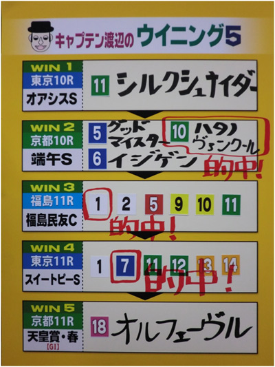 5/13キャプテン渡辺ウイニング5結果