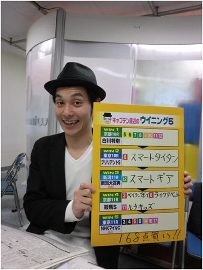 番組の冒頭でキャプテンがその日の勝負馬券を披露、