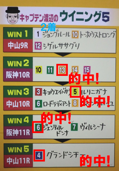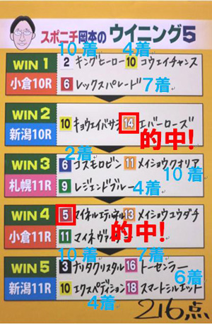 さて、日曜WIN5の予想はどうなったかというと・・・
