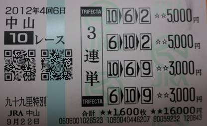 中山9R | 阪神10R | 中山10R | 阪神11R | 中山11R | 298,670円 |