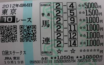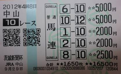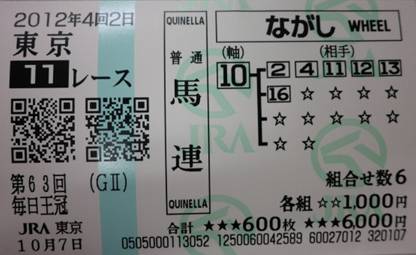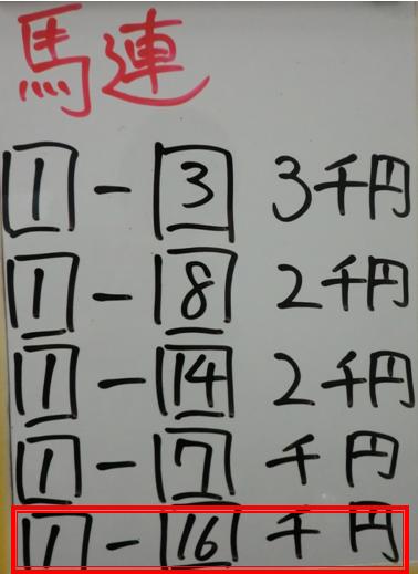 馬連5.1倍的中!・・・ですが、購入金額7千円のためマイナス収支となってしまいました。