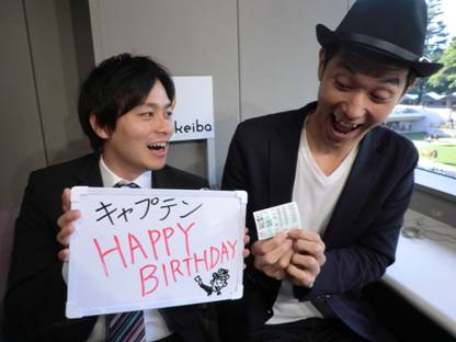 番組スタッフから誕生日プレゼントとして帽子を贈られたキャプテン。
