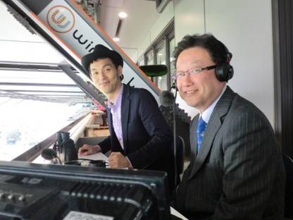 (実況席にて矢野アナとキャプテン)