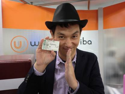 本番前、予想の馬券を購入するキャプテン。