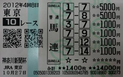 馬連 4-12 3,250円