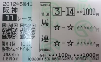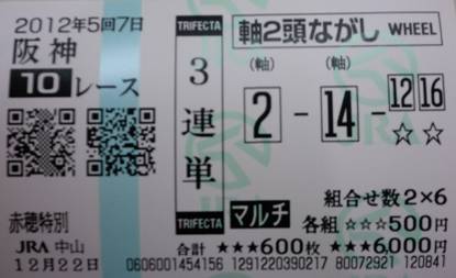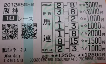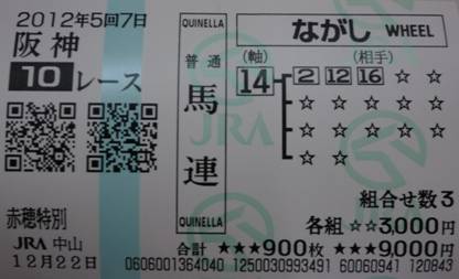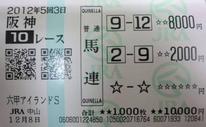 馬連9-12、2-9を購入!