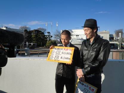 ハイセイコー前で凍てつくふたり。