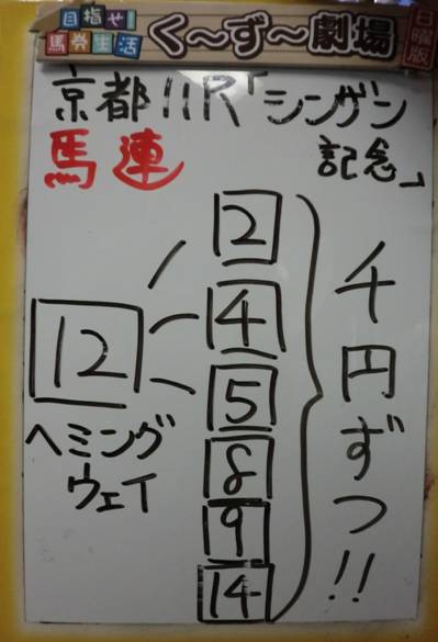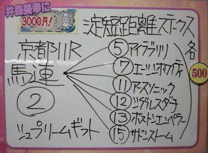 さて、当日メインレースの予想は、普段このブログでは紹介していないのですが・・・。