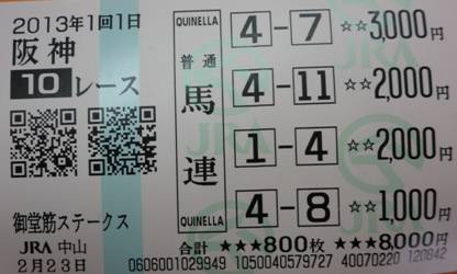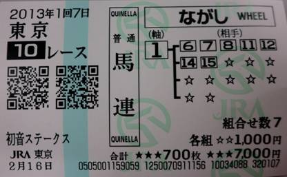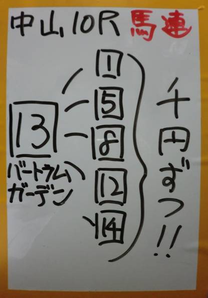 こちらは8番人気(13)バートラムガーデンから馬連5点で勝負。