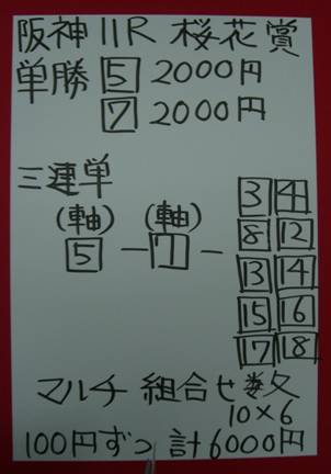 今回は阪神11R、中山11R、そして日曜皐月賞
