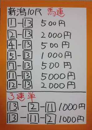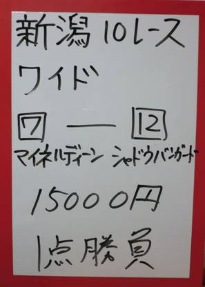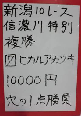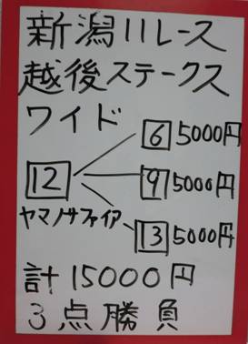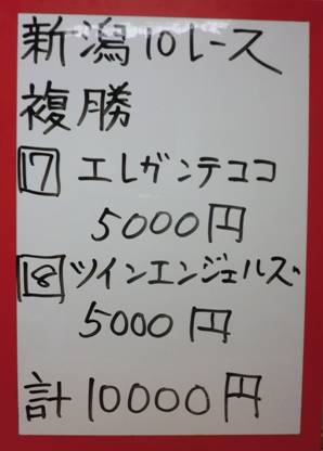 斉藤さん新潟11Rで複勝的中!