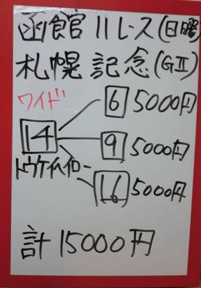 札幌記念はふたりとも本命の(14)トウケイヘイローが1着!・・・でしたが
