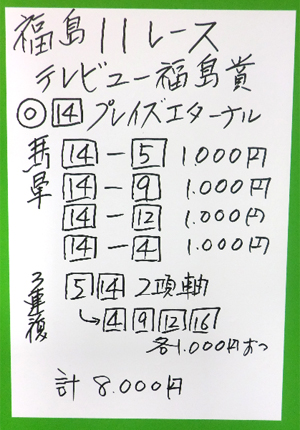 先週は残念ながら外してしまいましたが、それでも福島開催4週の内3週的中という快挙!