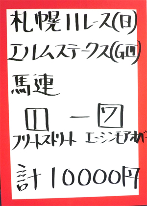 | 日曜 札幌11R エルムステークス(GⅢ) | |