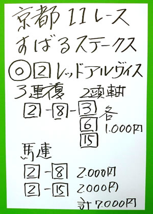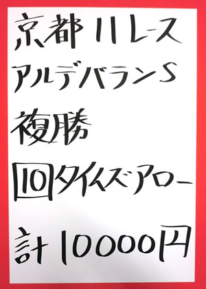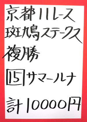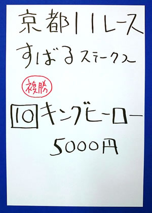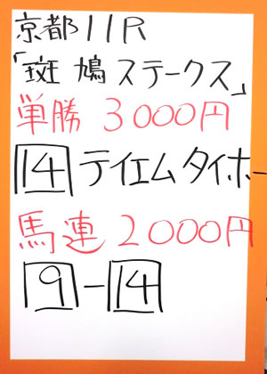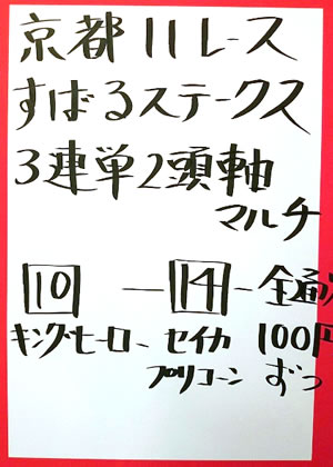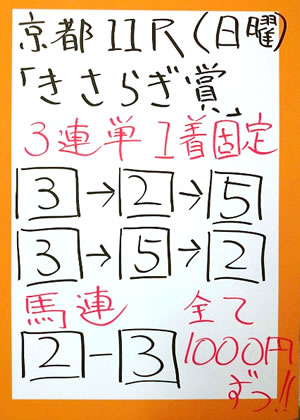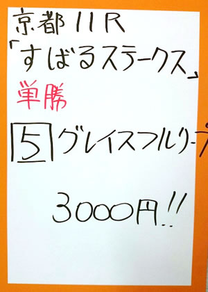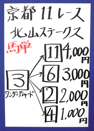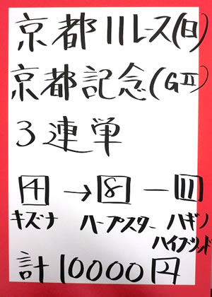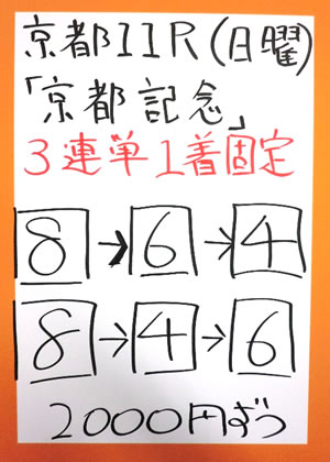 キャプテンさん、2週連続で、京都メインレースを的中!