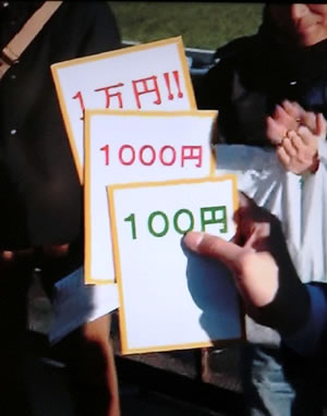 モノボケをして、3名中2名からマルがもらえたら賞金ゲット!ですが・・・