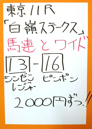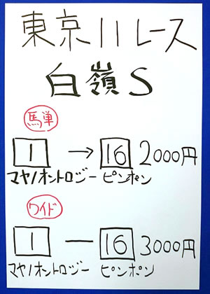 | 東京11R 白嶺ステークス | |