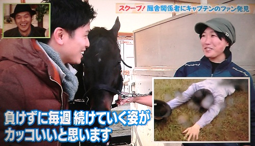厩舎関係者に、キャプテンさんのファンがいるとの情報をキャッチ!
