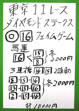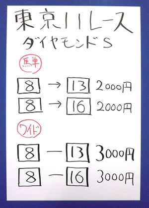 そして、東京メイン、GⅢ「ダイヤモンドステークス」
